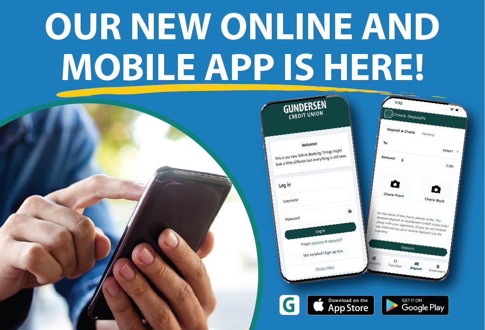 We’re excited to announce that Gundersen Credit Union’s new mobile app and updated online banking are officially live! 🎉